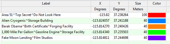 The program will create raster image files for the listed labels. It will create a KML file listing these image names at the defined locations. It will create a KMZ (zip) file which contains the KML file and the image files. The Google Earth KML and KMZ file names will be assigned automatically.