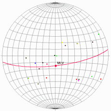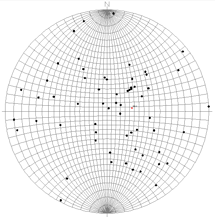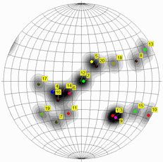 ! Note Stereonet contours (activated below) are based on point distributions within a Schmidt projection (equal area) diagram. If you plot points on a Wulff stereonet AND include contours, you may note that the point densities and contours might not correspond.