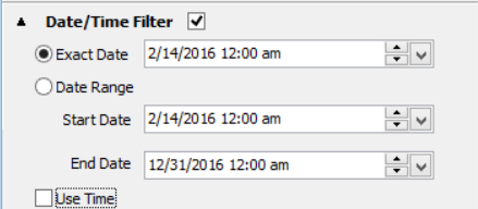 - Date Range: Click in this radio button to define a range of dates to be included, via the Start Date and End Date settings. Check the Use Time box below if you also need to specify a specific time.