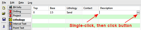 The LogPlot Text Editor window is used to type/paste in descriptive text. It is available in multiple datasheets: