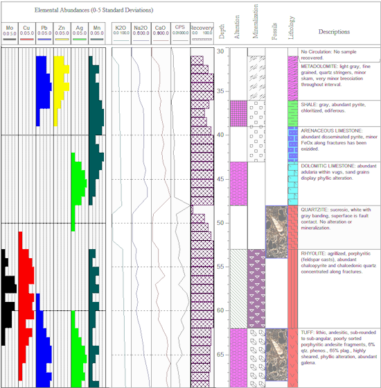 A Bar Graph Column is used to plot quantitative data as scaled bars over depth intervals.