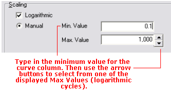 Logarithmic: Insert a check here if the curve is to be scaled logarithmically (log base 10) within the column. If left un-checked, the curve will be scaled linearly across the column.