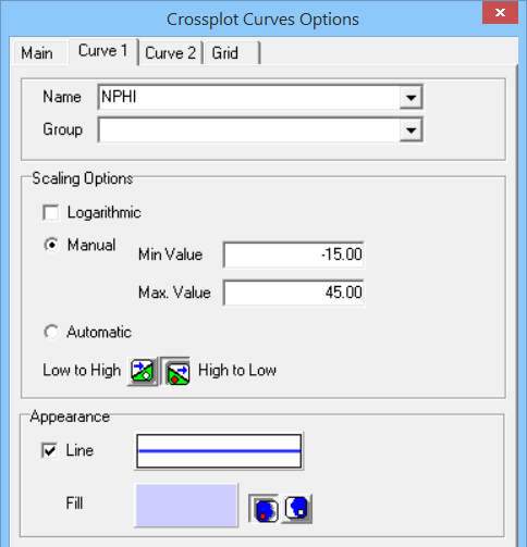 Manual: This is the default setting. This allows you to define manually the data values for each curve to correspond to the left and right column edges via the Min. Value and Max. Value boxes.