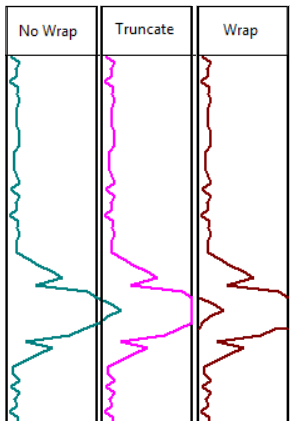 Wrap: This option will wrap the curve back to its baseline if the data value exceeds the maximum value of the column. When wrapped, the curve column then takes on the next data range for the plotting of the curve. If the wrapped data exceeds the maximum again, the program will continue to wrap to the baseline again.