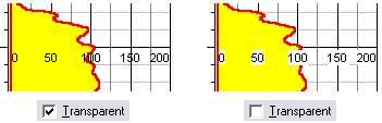 Transparent: Insert a check in this box if any background grid or curve lines are to show through the label text block. Leave this box cleared if the label text is to block out any background items. Compare the examples below.