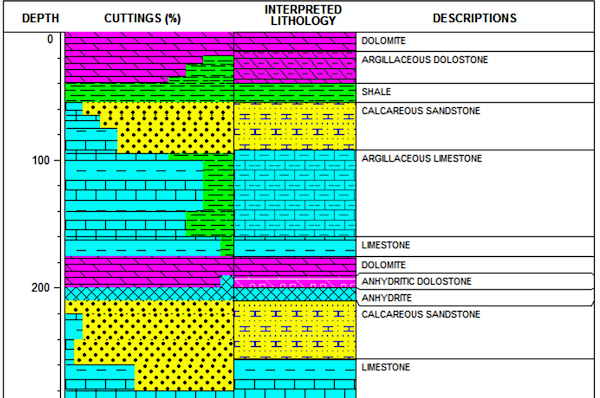 How it works: As you compile your log in LogPlot, the program will locate relative percentage data for declared keywords and intervals that are listed in a Percent datasheet that has the same name. It will plot the appropriate patterns in the Pattern Percent column, the width of each pattern corresponding to that component's percent representation. This is typically used to represent cuttings percentages in a graphic manner.
