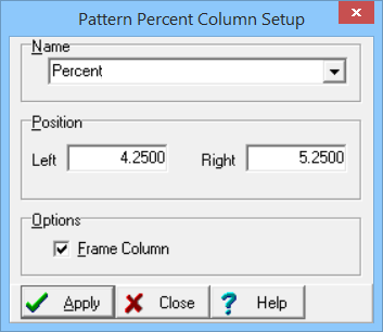 Name: Enter the name for this Pattern Percent column. Any data in the Percent datasheet that is flagged with the same name will be plotted in this Pattern Percent column.