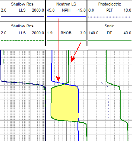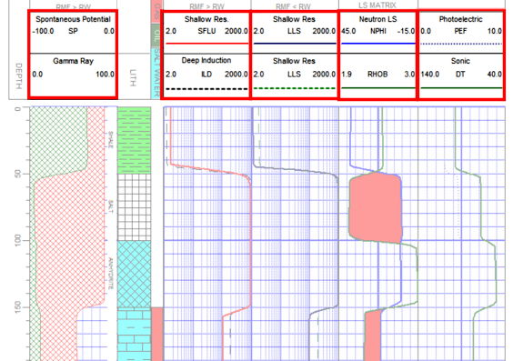 The Header/Footer Legend item is used to display column headings, value ranges and graphic samples for curve or bargraph columns. This is an automatic way to link header and footer text to quantitative columns in the log body for display of value ranges and line styles/colors.
