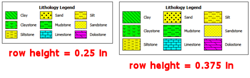 Row Height: This setting determines the overall size of the pattern blocks. LogPlot will maintain a rectangular shape to the blocks, as you increase the height then the width will increase proportionally.