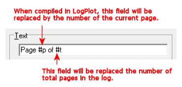 #p Inserts the current page number in the text area when compiled in LogPlot.