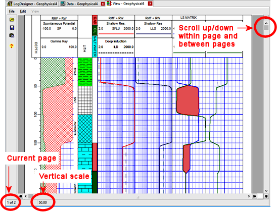 LogView displays each compiled log as a scrollable, continuous or page-breaked graphic view, either as a docked tab in the LogPlot program window or in a separate window.
