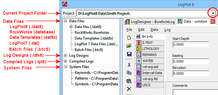 - Log Designs - These are the".ldfx8" design templates for your graphic log design. These are opened into the Log Designer window.
