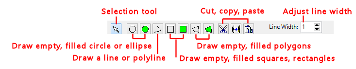 - For circles/ellipses and rectangles/squares, release the mouse button when it is the desired size. Use very small circles or squares for dots.