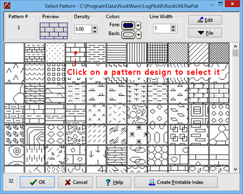 - Click on the pattern you wish to edit. It will be displayed in the Preview window, and will be shown with a red dot.
