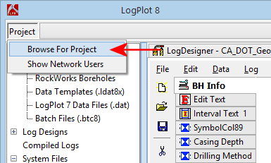 LogPlot will display all data files, log designs, and compiled logs which are in that folder.