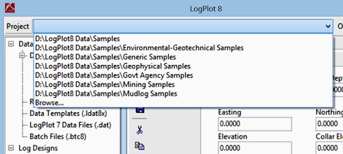 Click on the Project button at the top of the program window to open any of the Samples sub-folders to access these log designs and data files. (See Opening Project Folders for information.)