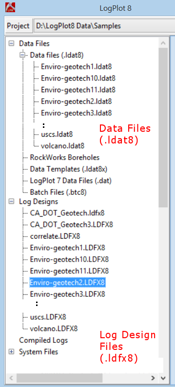Click on the current project name, at the top of the Project Manager pane, and select the LogPlot Data\Samples folder. If this is not listed, then click on the Browse option and browse for that, in your Documents folder.