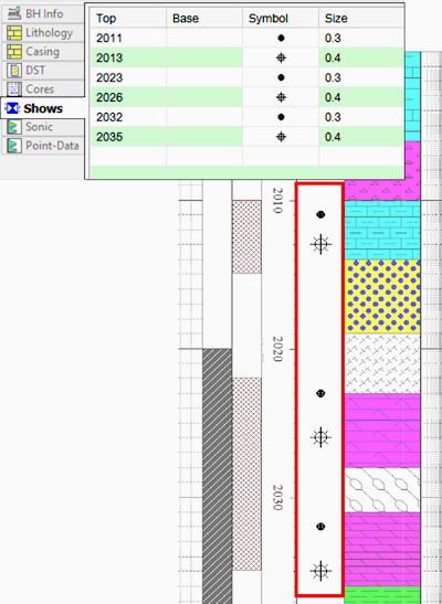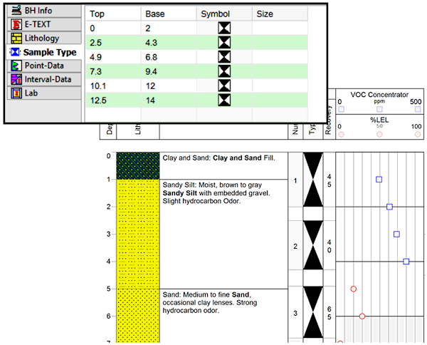 Corresponding RockWorks data table: Symbol (with loss)