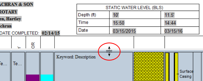 ! The actual size of the header or footer is not changed using this process - instead, more or less of it is shown on the design screen. You can, for example, have a very long header of which only a portion is visible within the design screen. When compiled with data in LogPlot, however, the entire header shows up.