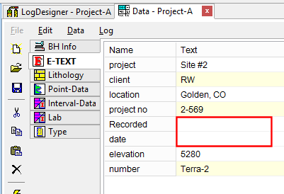 - Create a blank data template based on the log design, using the Log Designer’s File | Create New Data File menu option. This blank file can be saved as a data template for later retrieval for other boreholes.