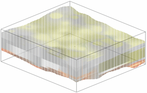 ! A solid model that represents interpolated colors is displayed differently than a solid model that represents I-Data or P-Data values. This is because the Color model's nodes store actual Windows color values. For example, dark brown = 16512, light tan = 10864606. The Voxels or Points displayed in RockPlot3D will display the actual color value stored for each voxel rather than applying a gradational color scheme.