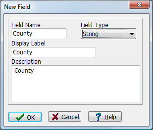 - Click OK when the New Field information is entered to your satisfaction, or Cancel to cancel the new-field operation.
