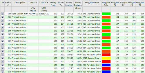 The program will determine the locations of the survey stations based on the control points. It will create a KML file with polygons using the defined vertices. It will create a KMZ (zip) file containing the KML file. The Google Earth KML and KMZ file names will be assigned automatically.