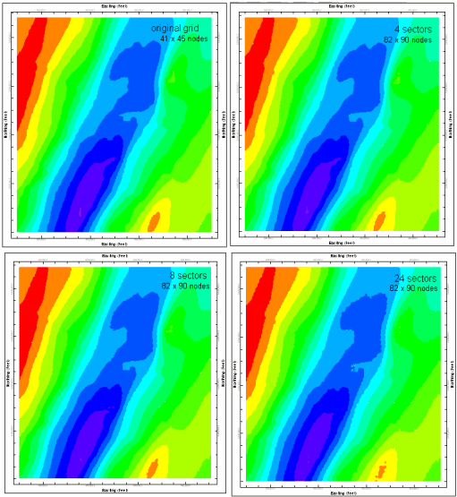 Generally using 90 Degree or 45 Degree sectors will be adequate; the examples below show how increasing the number of sectors may create artifacts in the model.