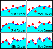 In automatic mode, the program will find the surface with the best fit to your data points, trying different orders of the trend surface equation (e.g. a flat surface, a surface with one bend, two bends, etc.). How well the surface fits is determined by a "correlation factor" that the program computes for each surface that is fit to the data. The greater the correlation factor the better the fit.