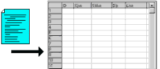 This program is used to import an existing text file of row and column data into the RockWorks datasheet. Once the data is displayed in the datasheet, you can modify the column names and types using the Columns | Column Properties menu option. The text file may contain tab characters, space characters, or comma characters as the column delimiters.
