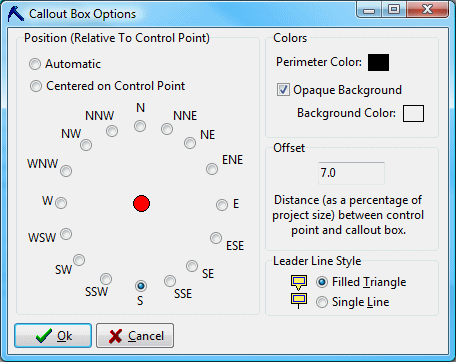 Leader Line Style: The "leader lines" connect the callout box with the control point. There are three possible settings: