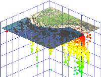 - Use the Map / 3D Points tool to display the earthquake locations and magnitudes in 3d.