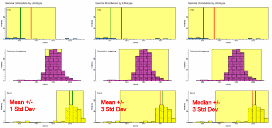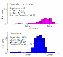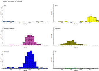 - Select the P-Data | Analyze | P-Data Histograms by Lithology menu option.