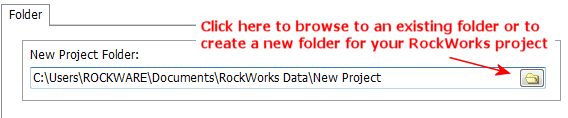 - New Project Folder: Here you define the name and location of the new RockWorks project folder.