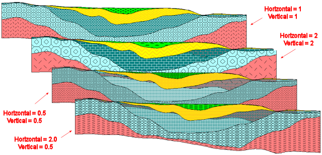 Fixed Pattern Scaling (Manual): Choose this option if you don't like the default pattern scaling. It allows you to enter a scalar for both the horizontal and vertical axes. This can be helpful if the patterns overall are simply too coarse or dense, of if you are displaying a cross-section at a very large vertical exaggeration and the patterns are being stretched.