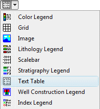 Use the Text Table menu command or toolbar button to insert a row and column table into an existing RockPlot2D image.