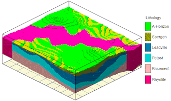 The program will determine the voxels to be donated, based on the replacement method you've defined above. It will then replace those corresponding nodes in the host model with the donor nodes, storing the result under the output RwMod file name. If you have requested a diagram, it will be displayed in a RockPlot3D tab in the Options window.