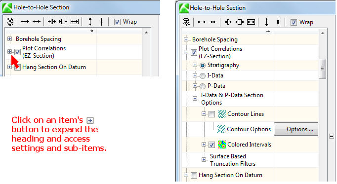 To "Expand" an item in a RockWorks menu, simply click on the small "+" button next to the heading. The "+" will change to a "-" and you will see a list of sub-options.