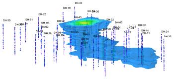 If you have already done the lithology or stratigraphy lessons, some of these procedures will be very much the same. However, rather than illustrating rock types only in logs, the downhole interval data will be illustrated as bargraphs in the logs. A solid model will be created to illustrate the isosurface, multi-panel section, and fence diagram.