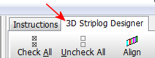 The 3D Striplog Designer tab is where you establish the log-specific settings. In this window: