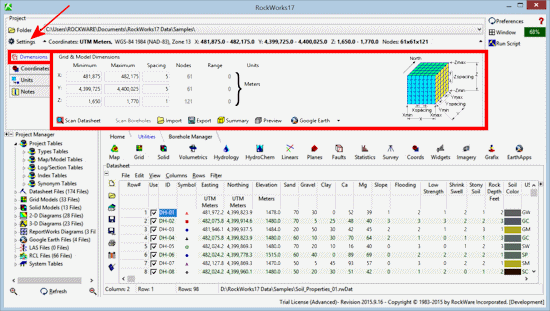Each time you start a new project in RockWorks, you need to establish the dimensions for RockWorks so that there will be consistency in how models and diagrams are dimensioned.