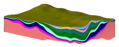 | Create a 3D stratigraphic model. Here you will create surface models for the top and base of each formation and display them as a stratigraphic model in 3D. |