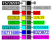 - The color numbers refer to the very large color palette in Windows. If you aren’t sure what to enter, you can leave it blank and the program will assign black. If you do wish to specify specific colors, see Color Codes (below).